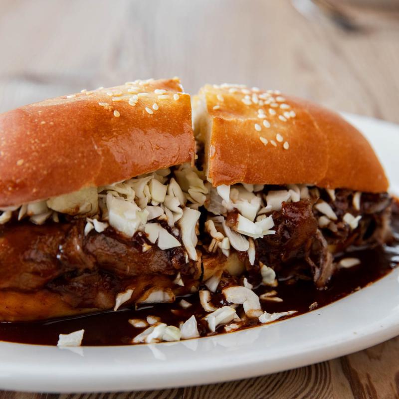Roast beef in barbeque sauce with cabbage. Mini 8.90 | Large 11.00